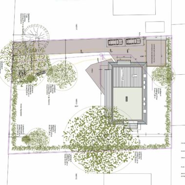 Der Erhalt der gärtnerisch angelegten Vorgartenzone, unter Schutz des wertvollen Baumbestandes, war Voraussetzung der Planung.
