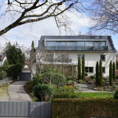 Das heutige moderne, villenähnliche Wohnhaus, inmitten eines gewachsenen Wohnviertels der 50-60iger Jahre, im Musikerviertel, 3-geschossig mit Mansarddach, gründet auf einem 2 geschossigen, freistehenden Wohnhaus aus dem Jahre 1956, auf einem großzügig geschnittenen Grundstück. Die Herausforderung bestand darin, eine hochwertige Dachgeschosswohnung mit Seeblick und interner Erschliessung der Wohnungen, durch Treppenhaus und Aufzug, zu planen.