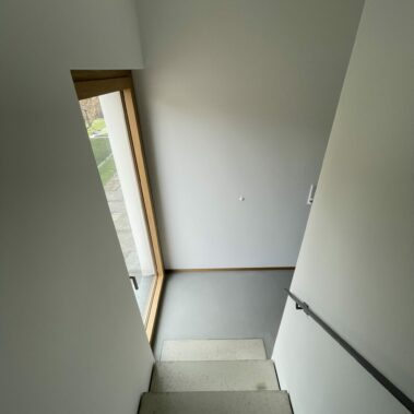 Das Wohnhaus wurde um eine Achse nach Westen erweitert und ausgebaut. Zusätzlich erhielt es über die gesamte Gebäudelänge- und breite einen neuen Dachstuhl in Mansardform in Naturschieferplattendeckung, sowie eine wärmegedämmte Putzfassade mit modernen Holz-Aluminiumfenstern.