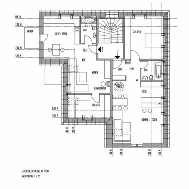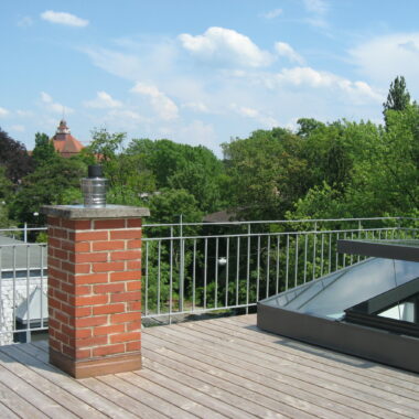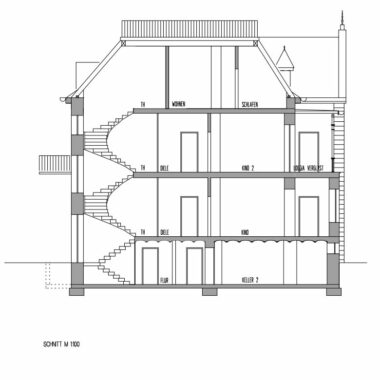 Umbau zu einer Villa mit 4 Eigentumswohnungen in einem massiven zweigeschossigen Kulturdenkmal aus der Gründerzeit. Das Wohnhaus ist nord-/südorientiert, im 1.OG und DG nach Nordosten oder Westen ausgerichteten Balkonen und einer ca. 40m2 großen Dachaltane.