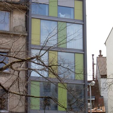 Eine reizvolle Aufgabe bedeutete die Bebauung einer am süd-westlichen Rand der Altstadt von Konstanz gelegenen schmalen Freifläche von 12m Tiefe und 5,60m Breite, innerhalb eines historisch, städtebaulichen Gefüges mit mittelalterlichen Stadtmauerteilen im Fundamentbereich. Hierbei wurden die historischen Funde behutsam konserviert und Bohrpfähle,zur Erhöhung der Tragfähigkeit des Fundamentes für den 6-geschossigen Neubau, in das Erdreich eingebracht.