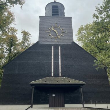 Die Kirche ist als reine Holzskelettkonstruktion mit dunkel eingefärbter Zedernholzschindelverkleidung konzipiert worden. Sie wurde 1996 zu einem Kulturdenkmal erklärt. Dies begründete sich in der Verbindung zweier Baustile, der neuen Sachlichkeit dem Expressionismus.