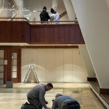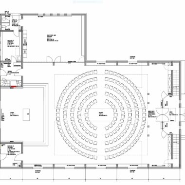 Die Einzelbestuhlung ermöglichte eine vollflächige Verlegung einer Fußbodenheizung im Kirchenraum und somit einen durchgängigen Plattenbelag mit dem vorhandenen „Solnhofer Kalksandstein“, sowie die notwendige mediale Ausstattung eines multifunktionalen Raumes.