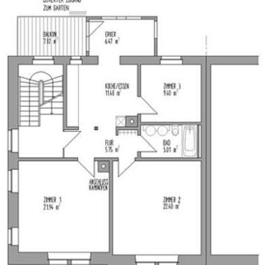 Die 3 Eigentumswohnungen befinden sich in dem oben erwähnten Kulturdenkmal, einem massiven zweigeschossigen Doppelwohnhaus aus der Gründerzeit, erbaut 1902. Das Wohnhaus ist ost-/westorientiert, mit nach Osten ausgerichteten Balkonen und verglasten Erkern.